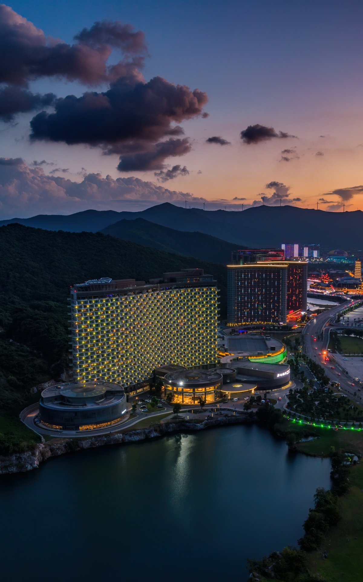 Wallpaper: bird's eye view, hotel, sunset - 1200x1920