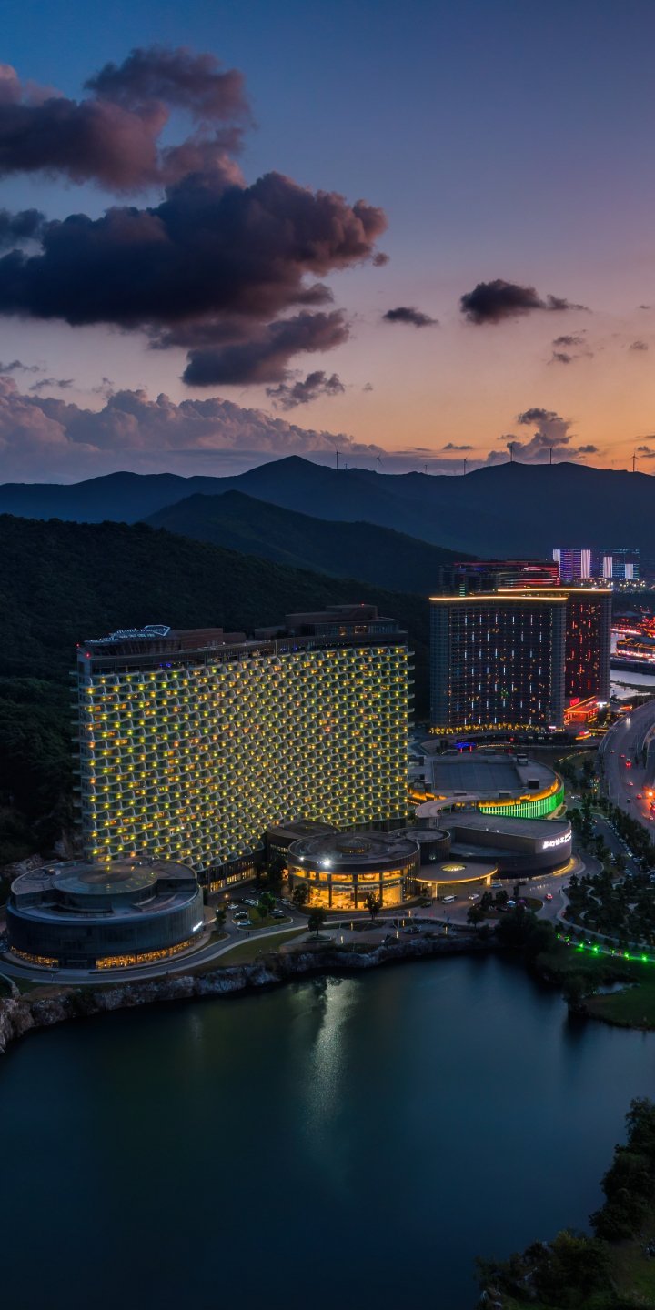 Wallpaper: bird's eye view, hotel, sunset - 720x1440