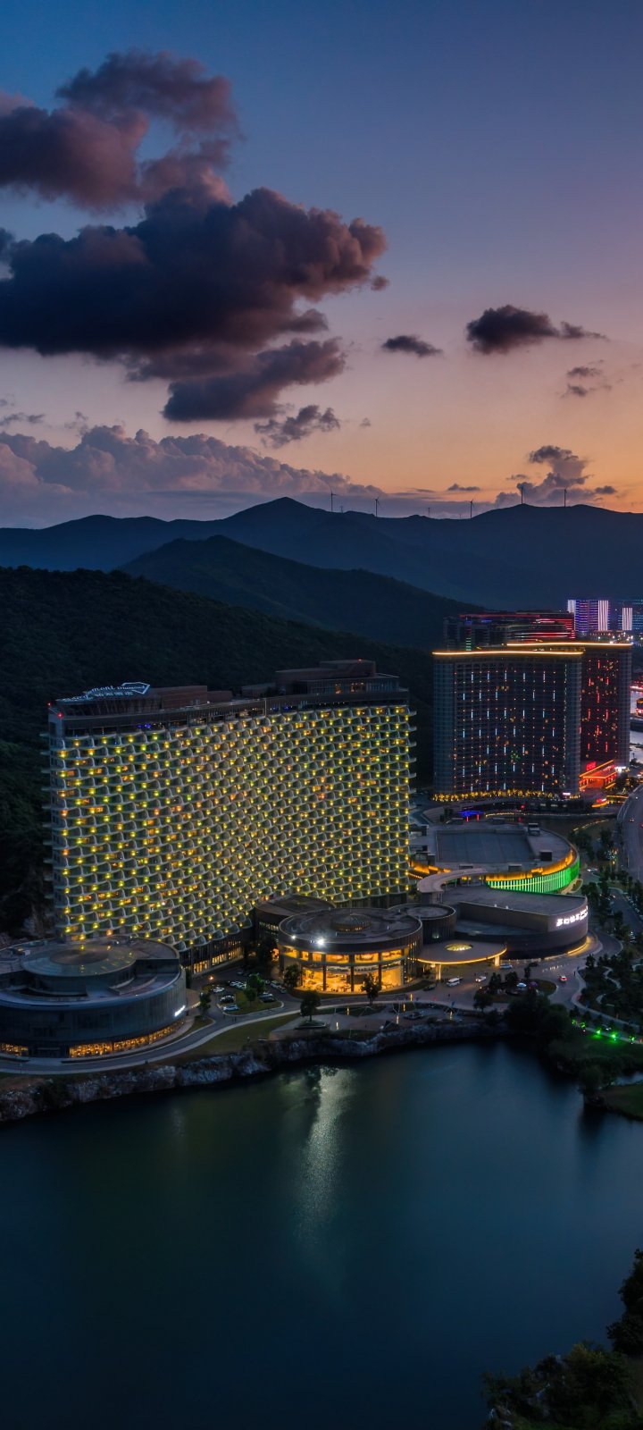 Wallpaper: bird's eye view, hotel, sunset - 720x1600