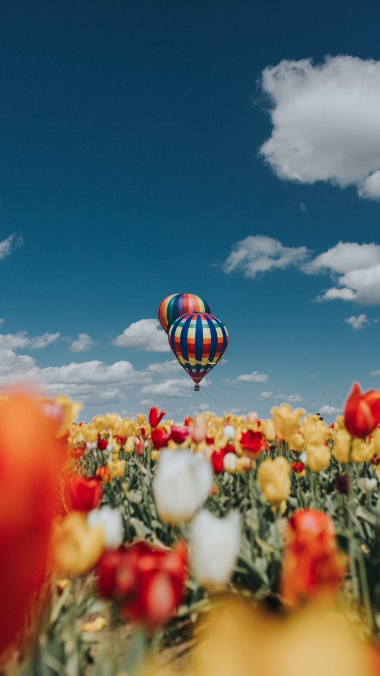 Wallpaper: balloon, tulips, blue sky - 750x1334