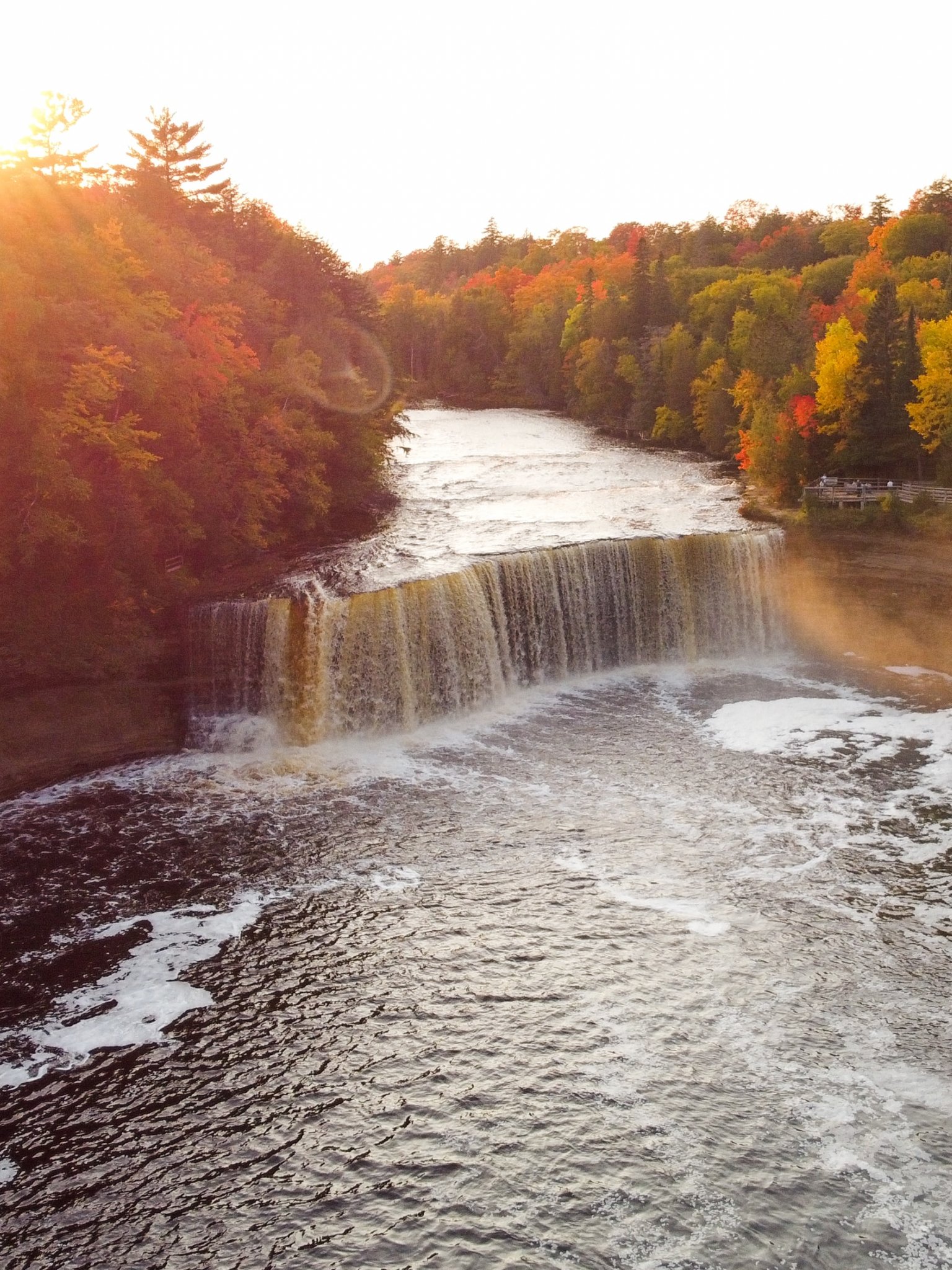 Wallpaper: waterfall, sunlight, bird's eye view - 1536x2048