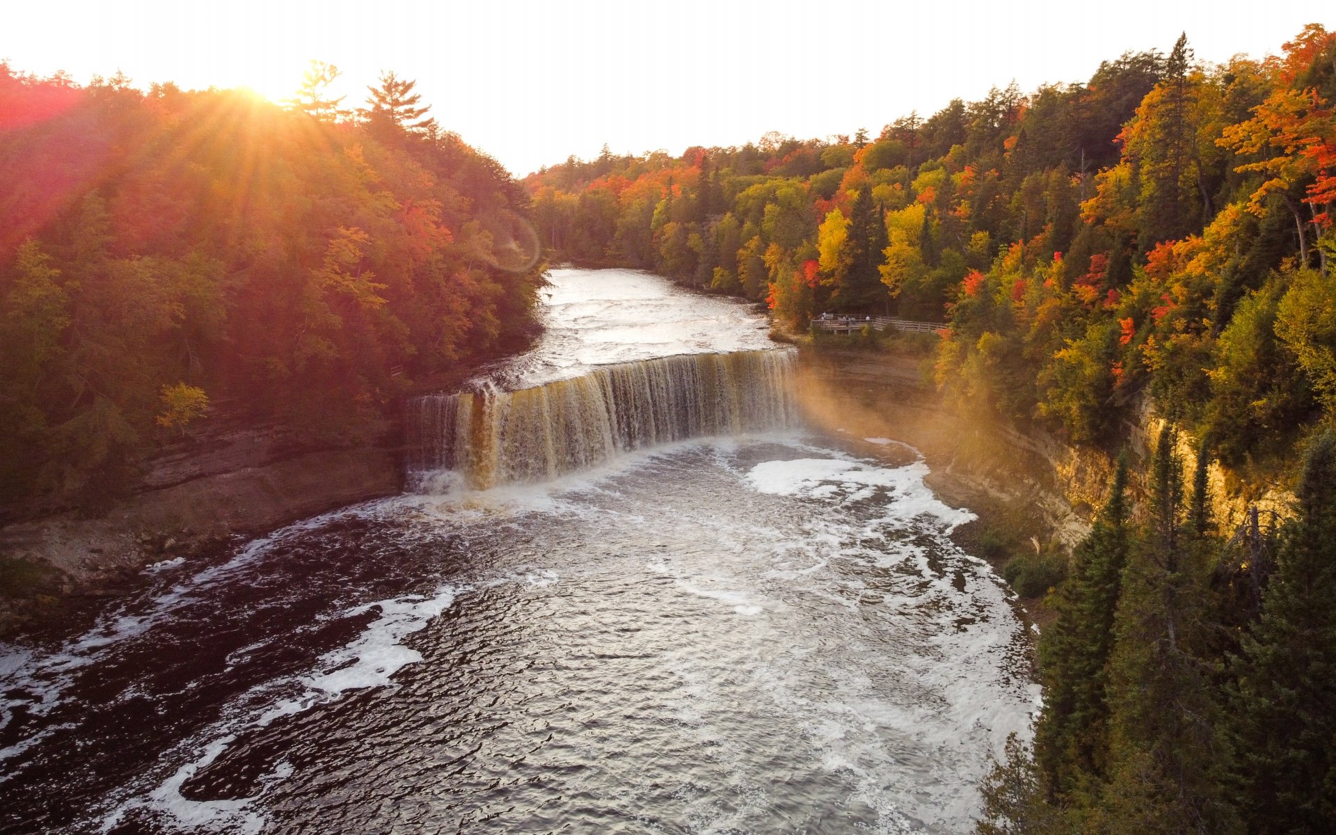 Wallpaper: waterfall, sunlight, bird's eye view - 1920x1200