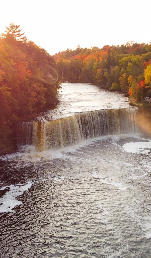 Wallpaper: waterfall, sunlight, bird's eye view - 600x1024