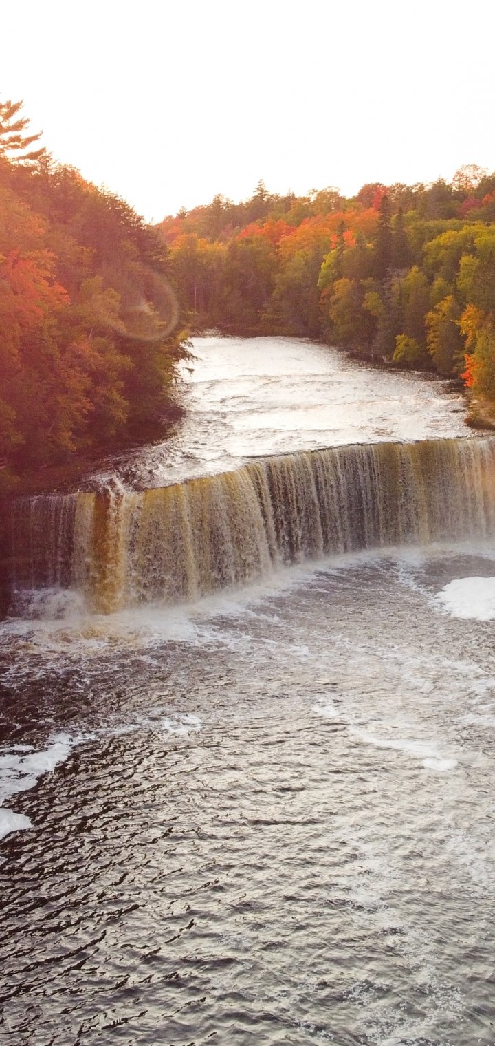 Wallpaper: waterfall, sunlight, bird's eye view - 720x1520