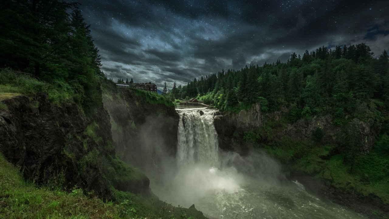 Wallpaper: Snokvalmi Waterfall, night, landscape - 1280x720