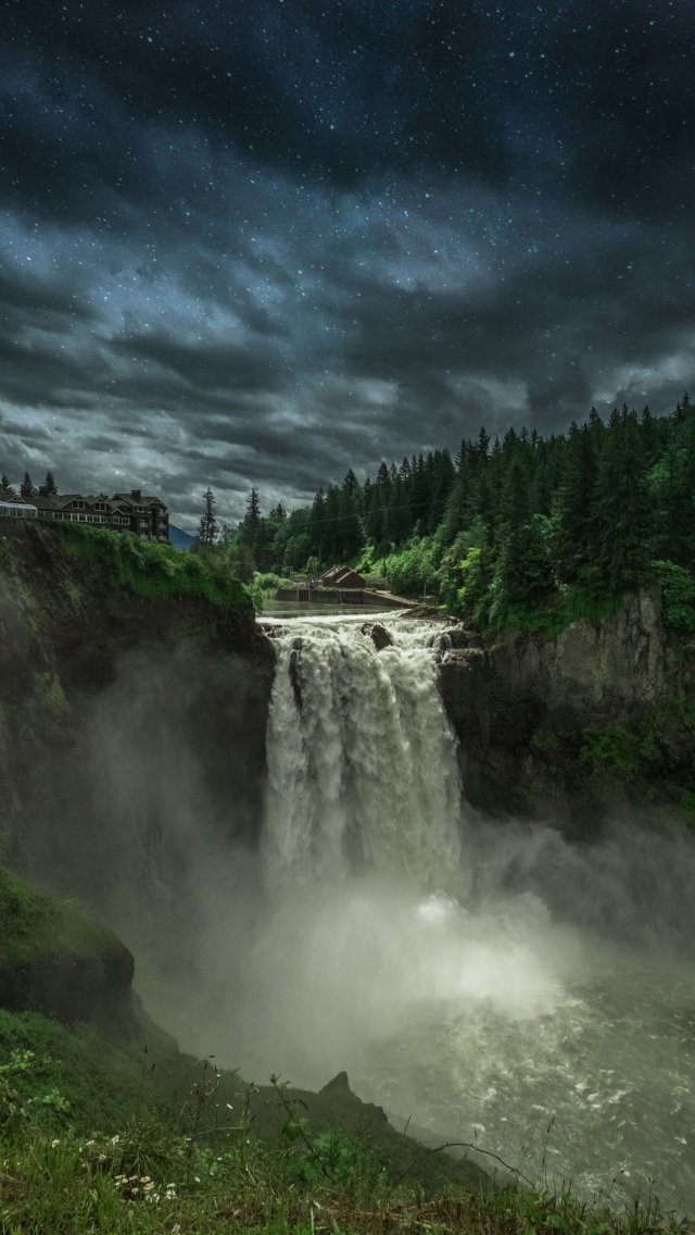 Wallpaper: Snokvalmi Waterfall, night, landscape - 640x1136