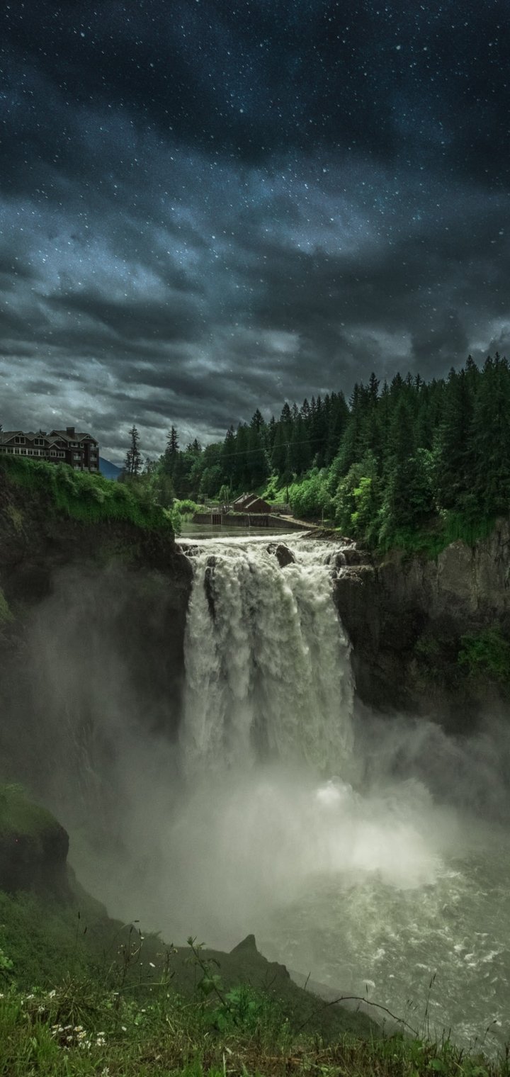 Wallpaper: Snokvalmi Waterfall, night, landscape - 720x1520