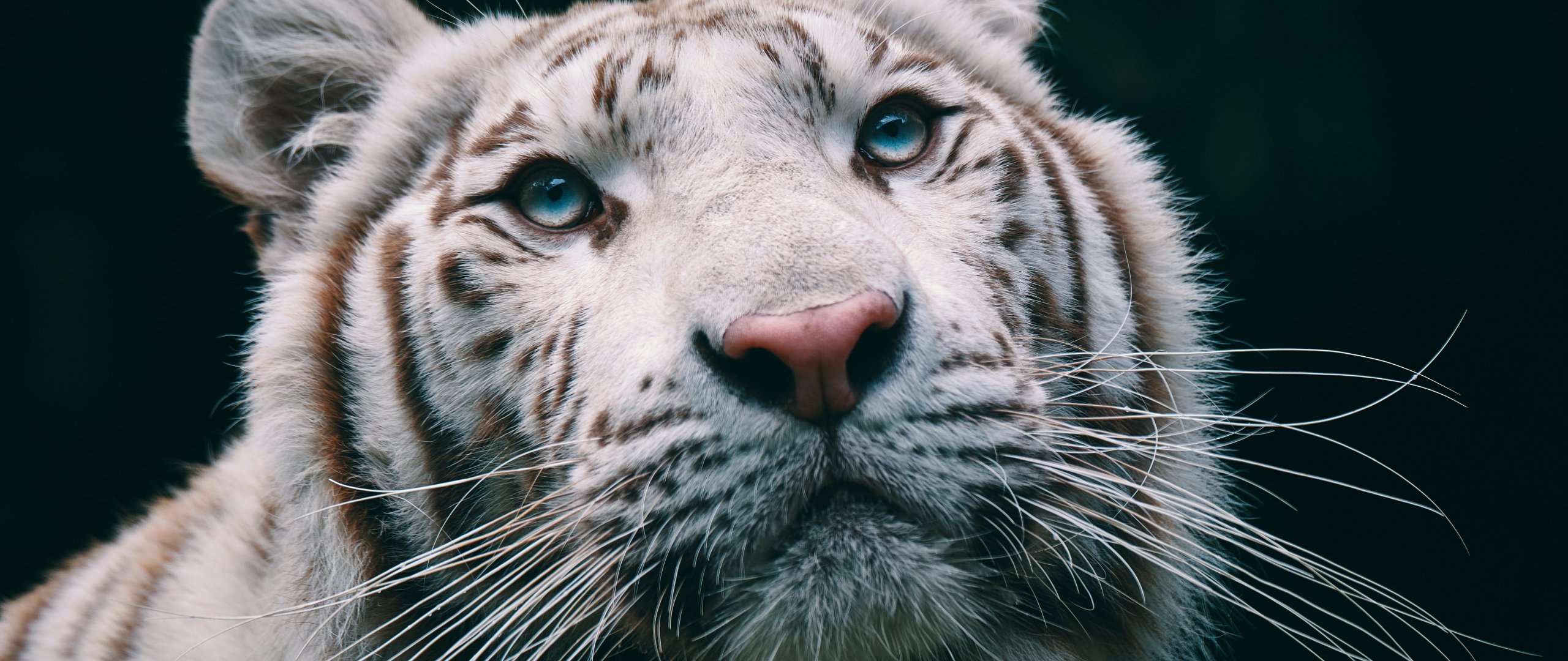 Wallpaper: albino, tiger, muzzle - 2560x1080