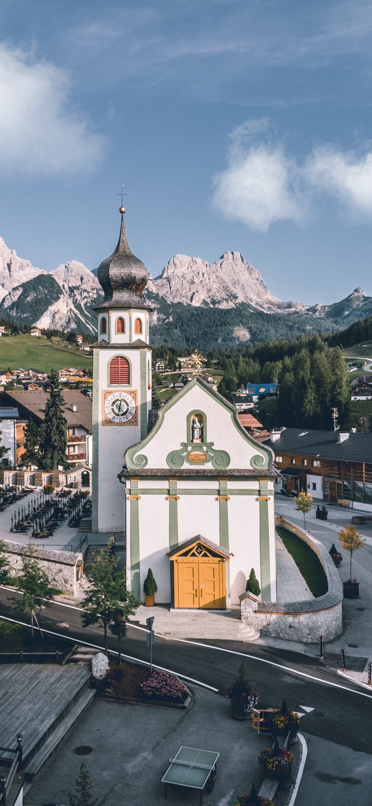 Wallpaper: church, valley, landscape - 1242x2688
