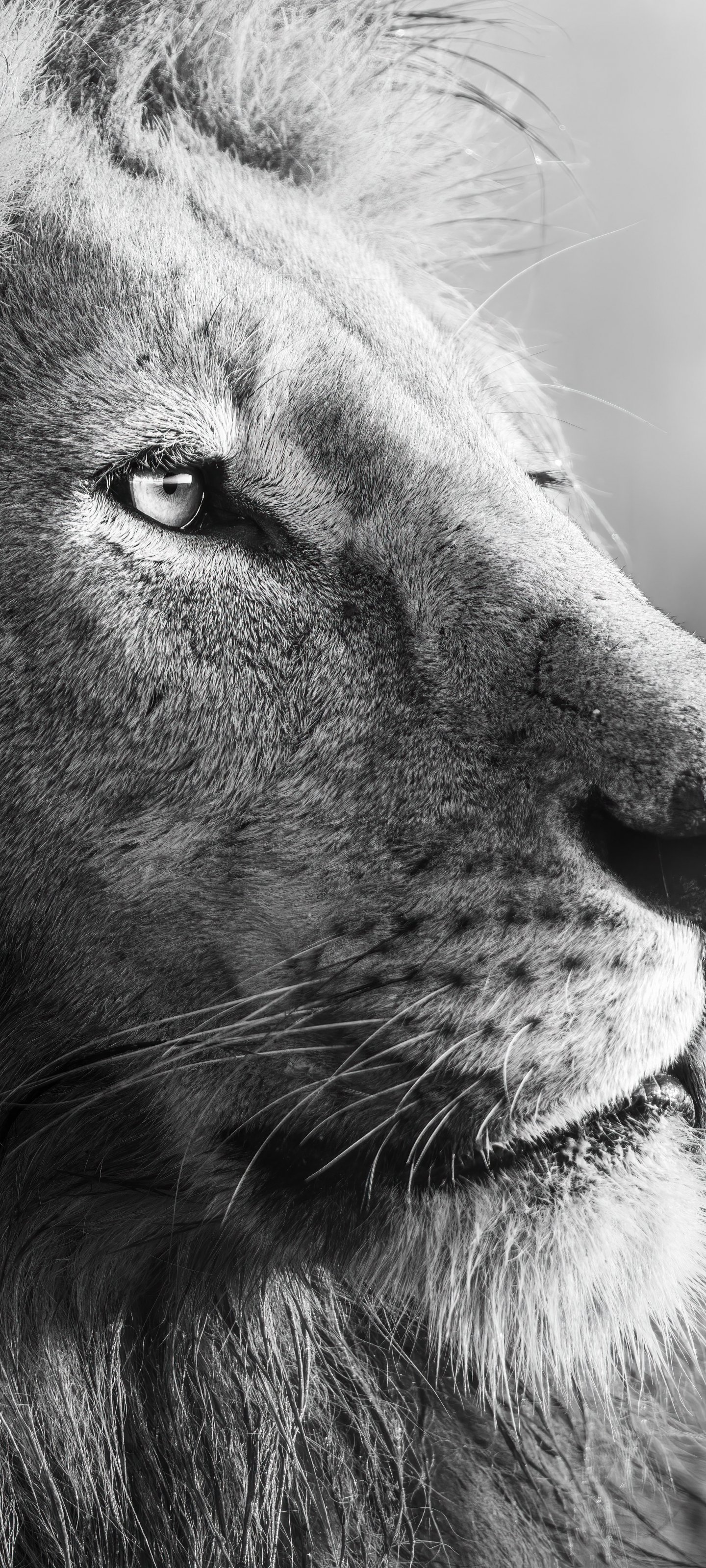 Wallpaper: lion, predator, black and white - 1440x3200