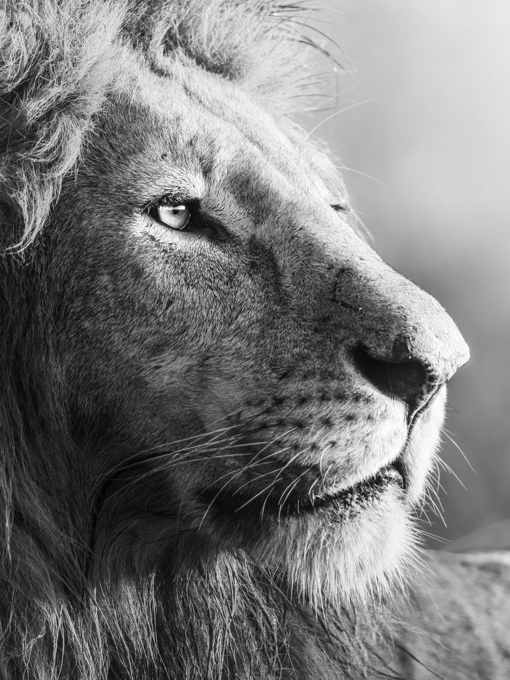 Wallpaper: lion, predator, black and white - 1668x2224