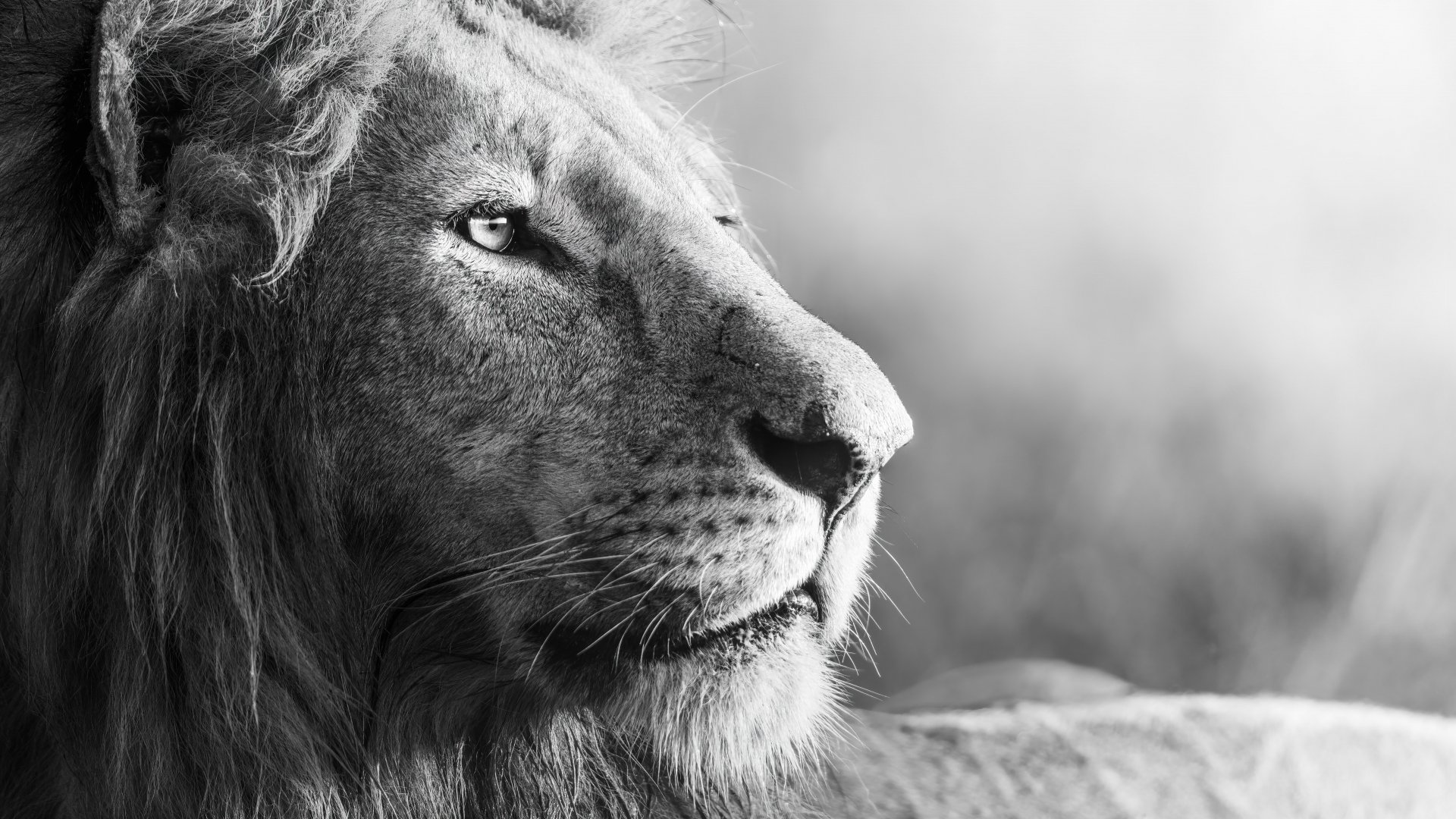 Wallpaper: lion, predator, black and white - 1920x1080
