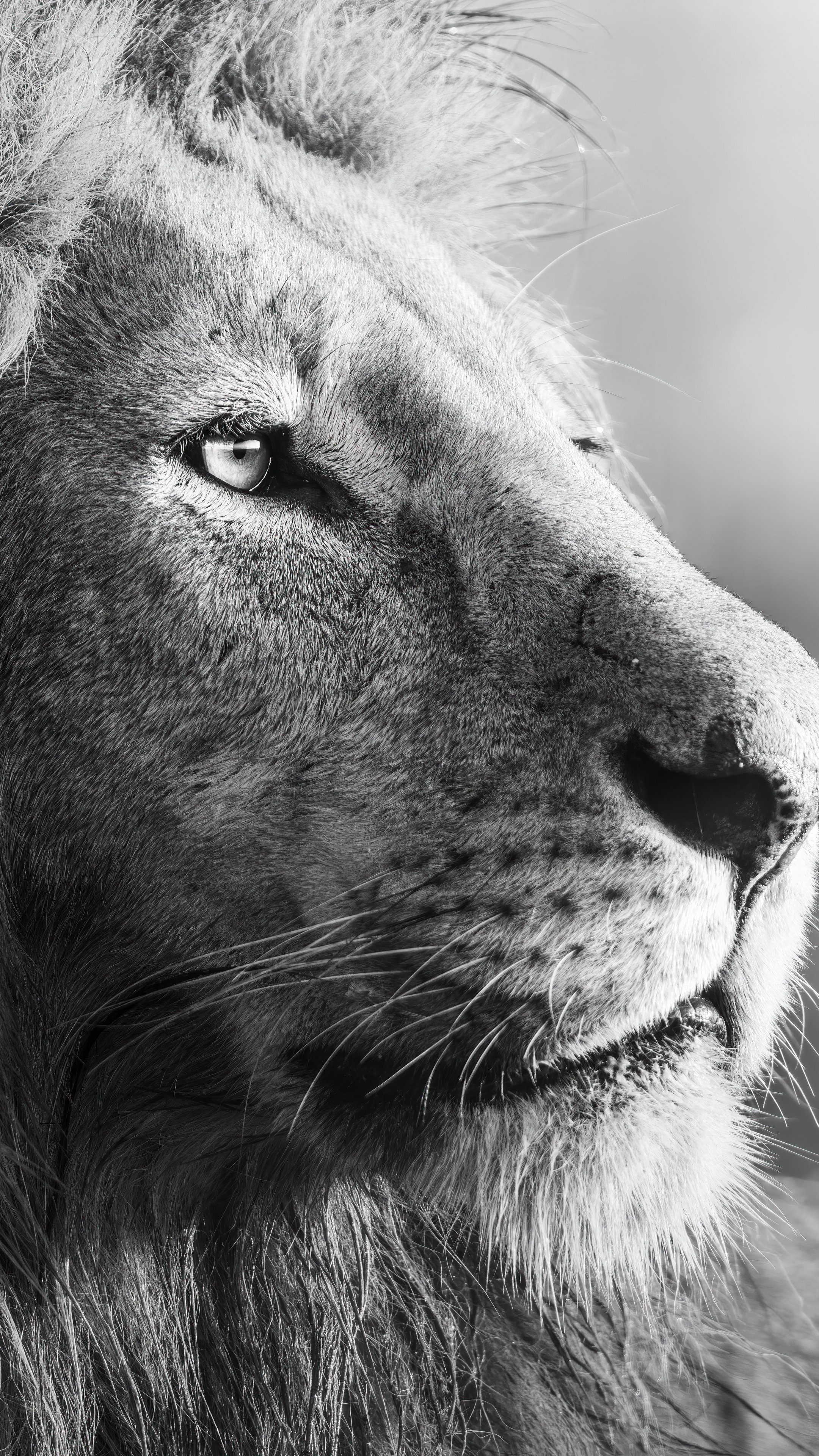 Wallpaper: lion, predator, black and white - 2160x3840