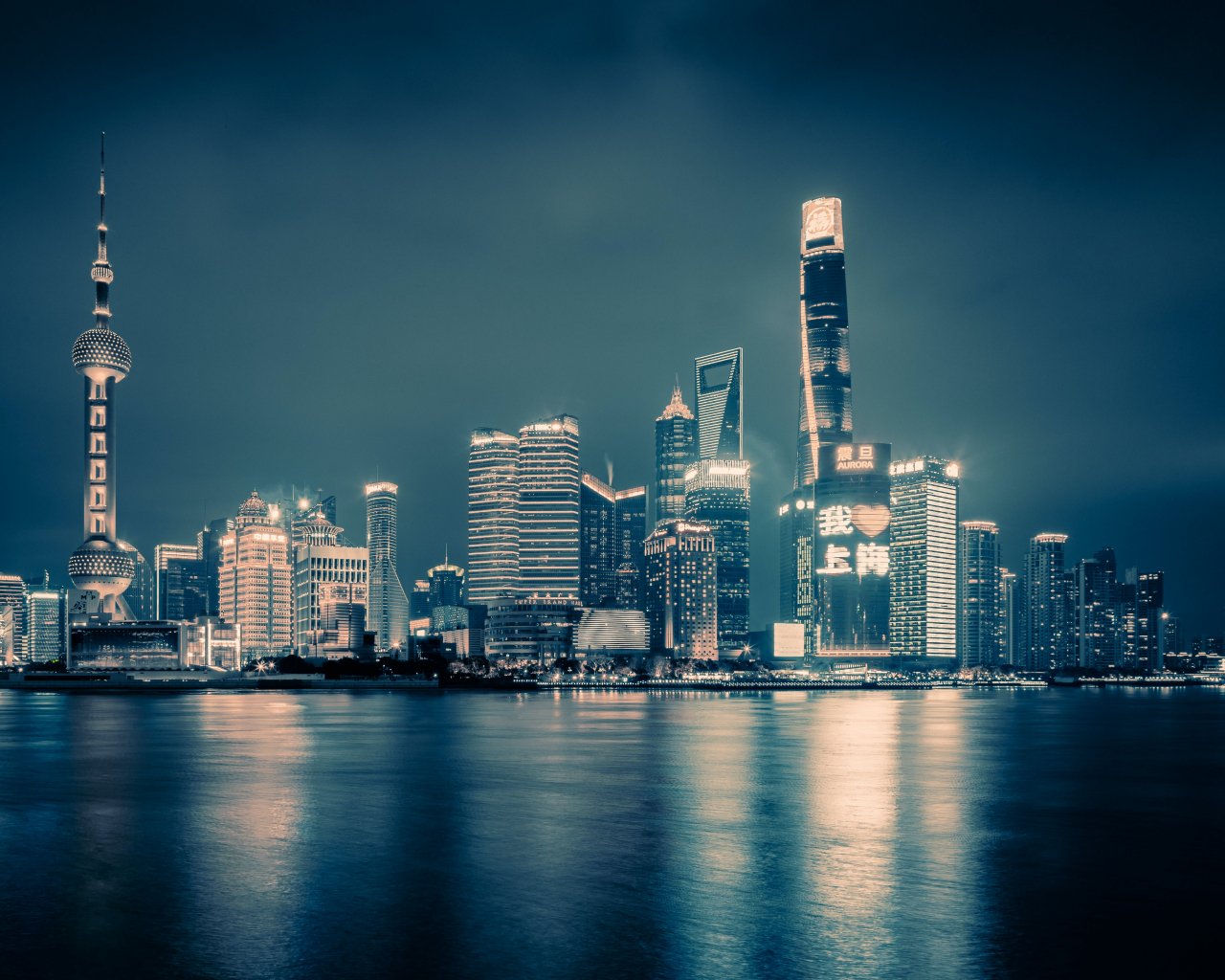 Wallpaper: Shanghai, night city, dark - 1280x1024