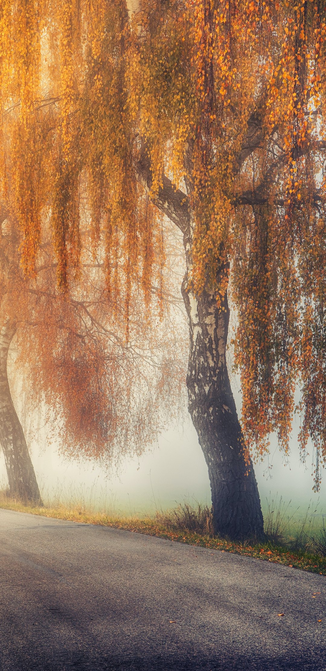 Wallpaper: autumn, road, sunlight - 1080x2220