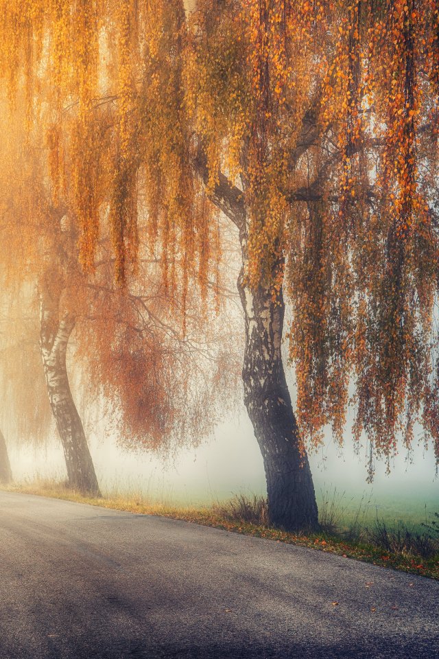 Wallpaper: autumn, road, sunlight - 640x960