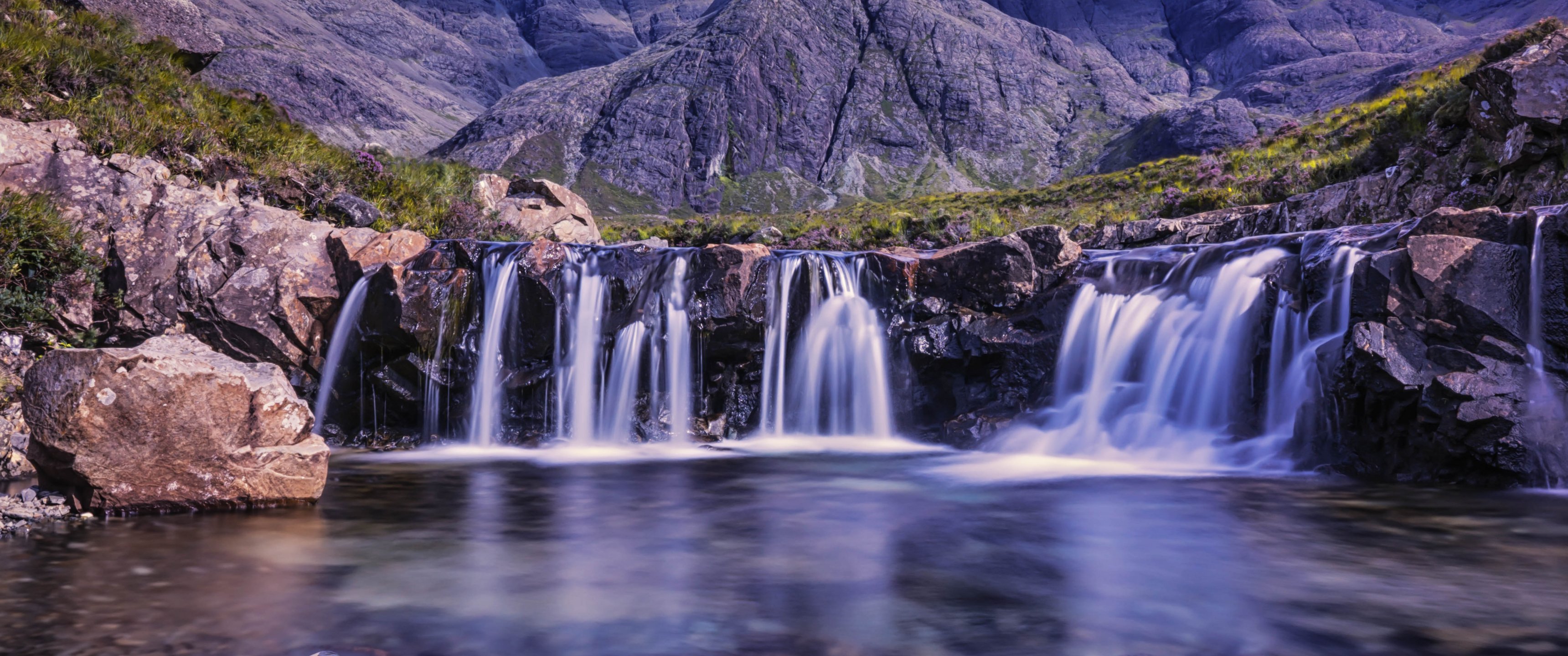 Wallpaper: waterfall, landscape, river - 3440x1440