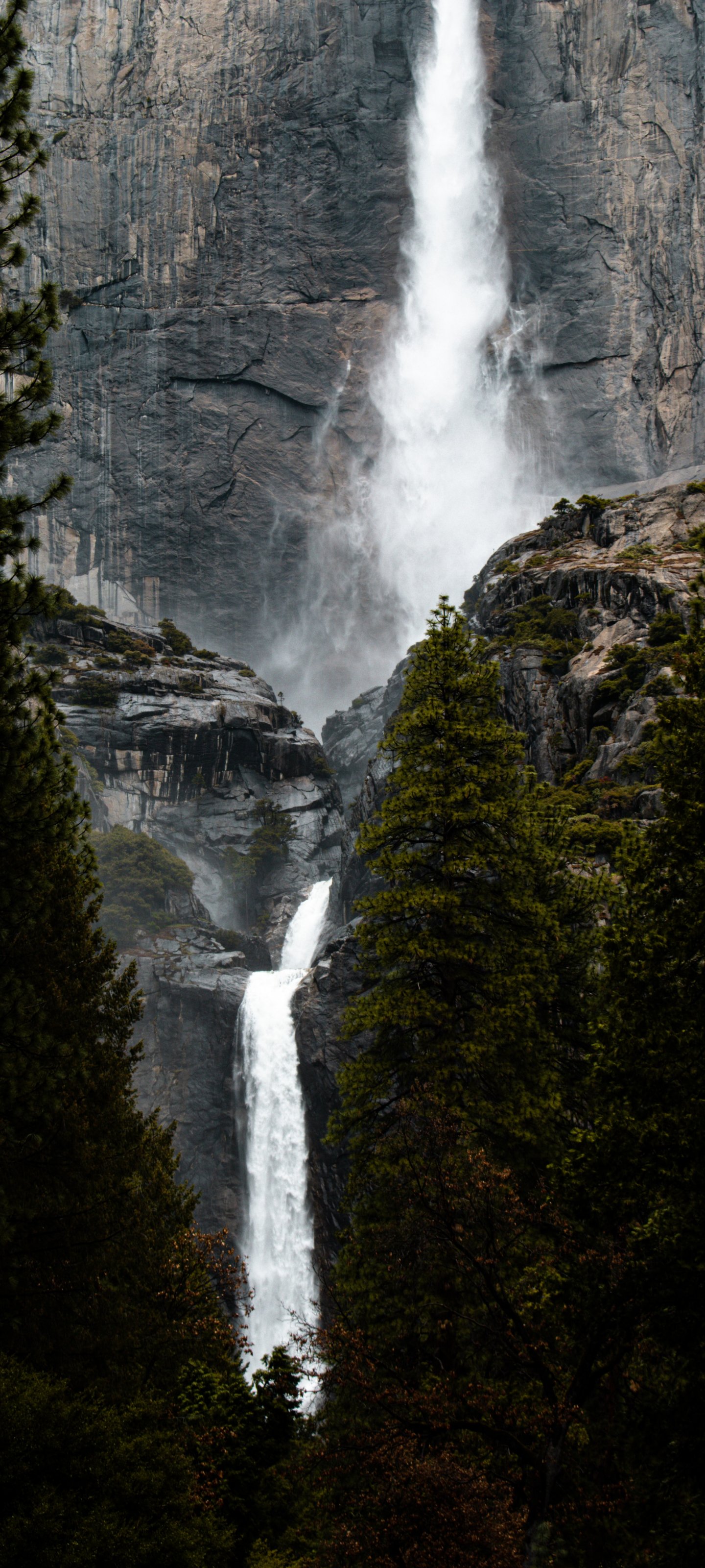 Wallpaper: waterfall, mountains, nature - 1440x3200
