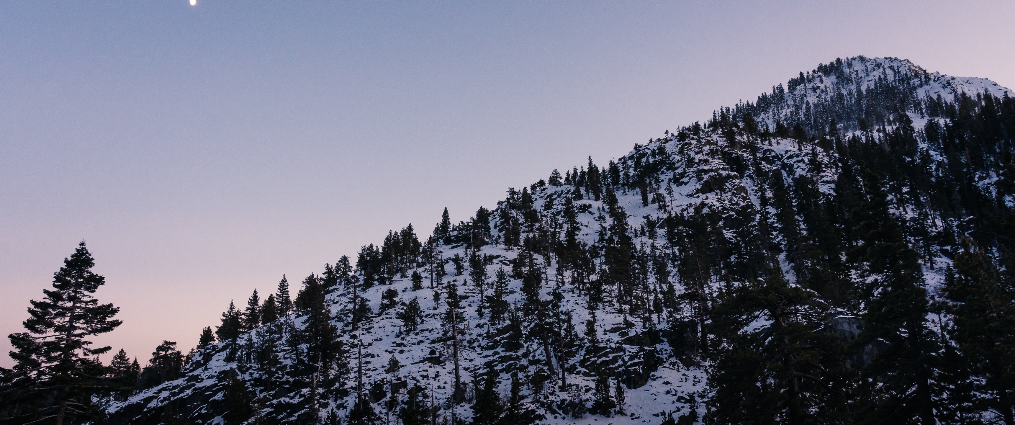 Wallpaper: mountain, slope, morning, snow - 3440x1440