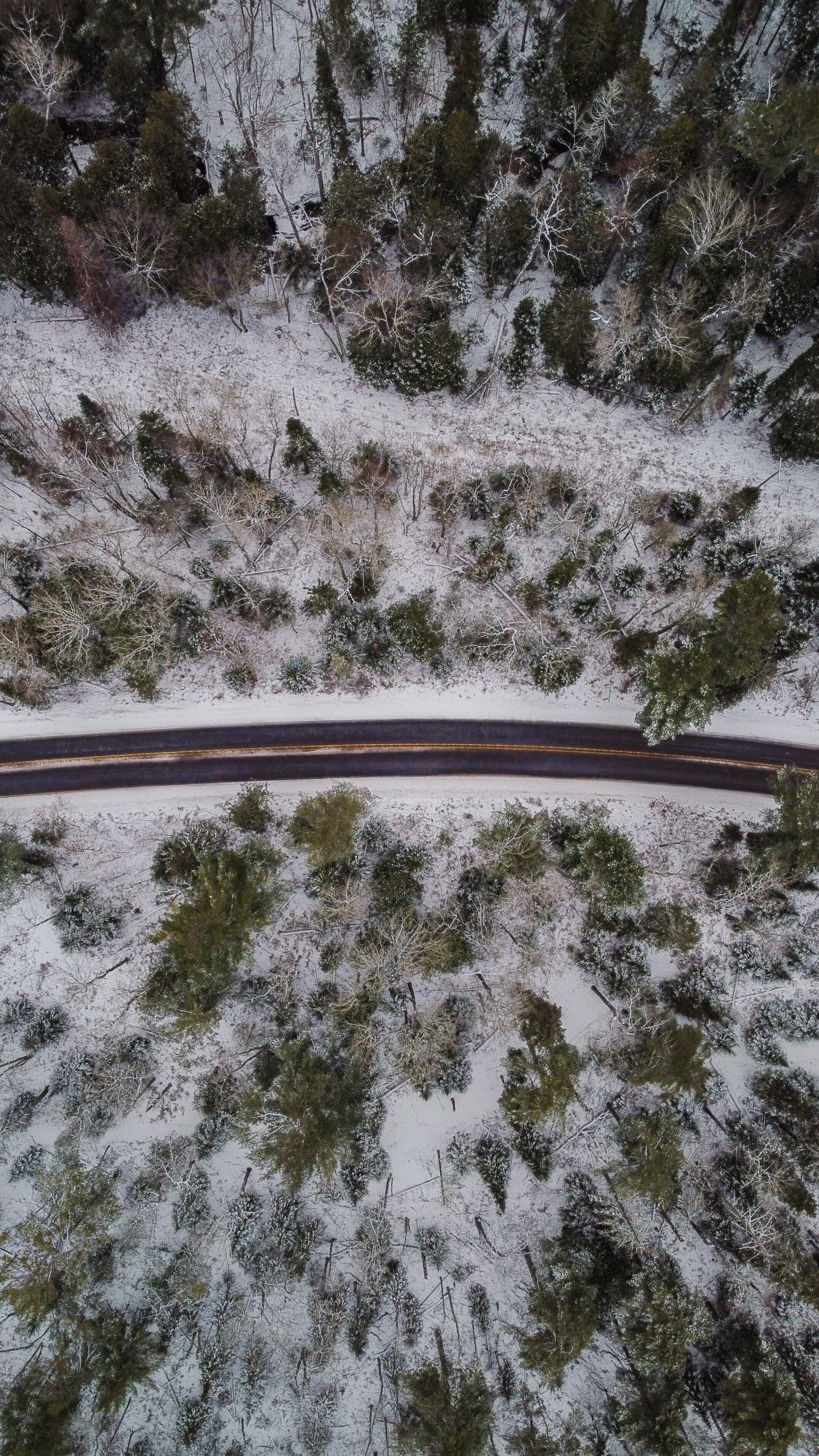 Wallpaper: winter road, top view - 1440x2560
