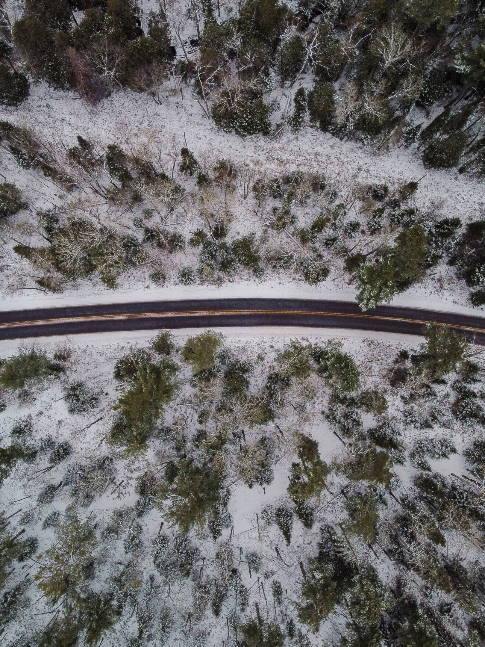 Wallpaper: winter road, top view - 1620x2160