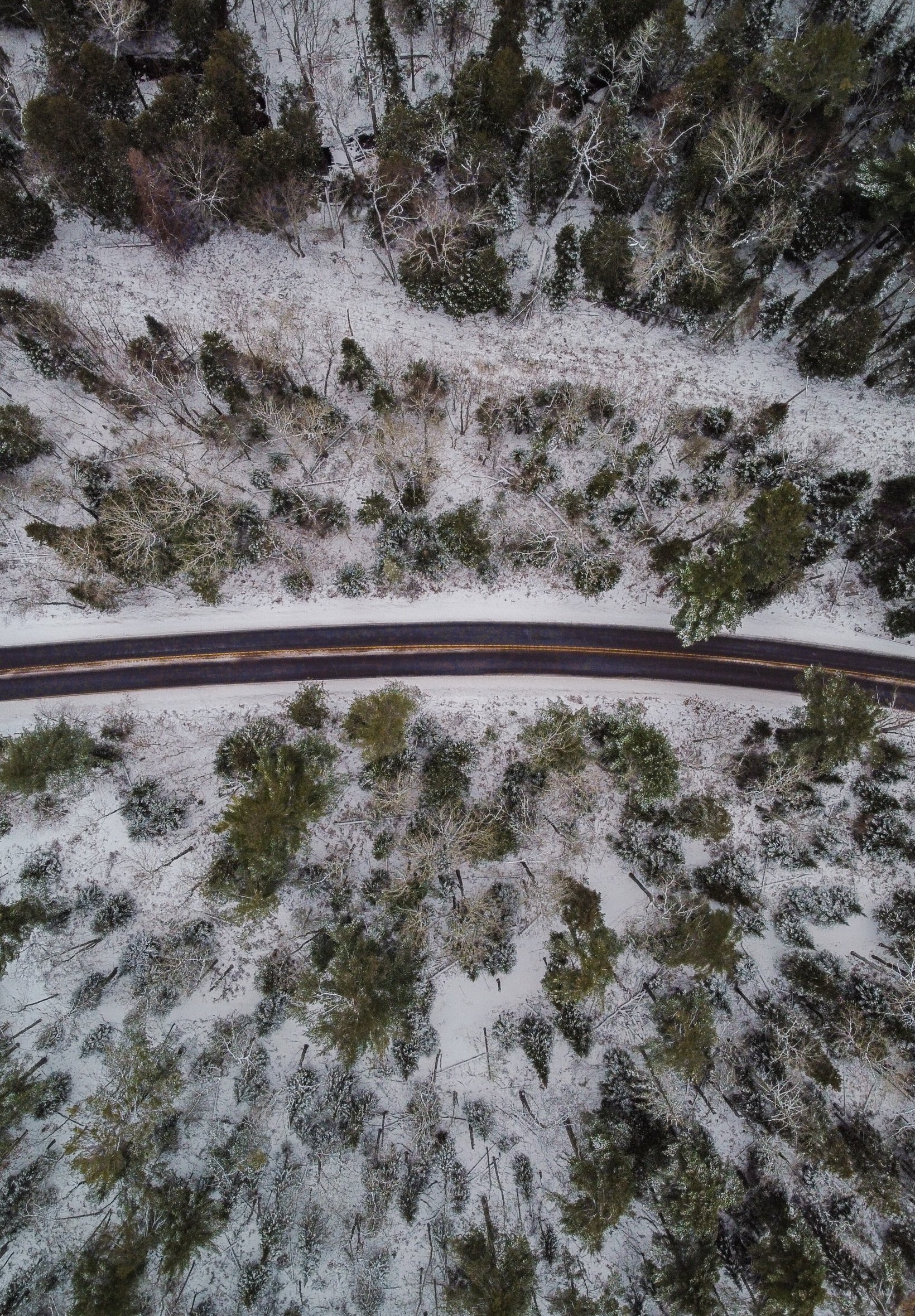 Wallpaper: winter road, top view - 1640x2360
