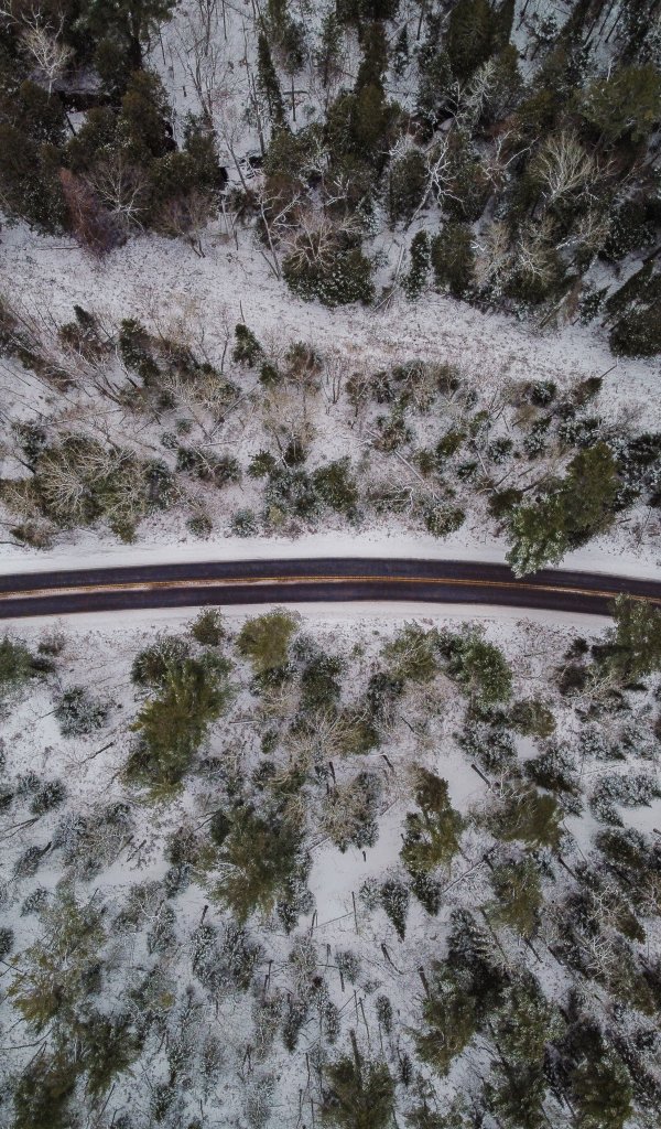 Wallpaper: winter road, top view - 600x1024