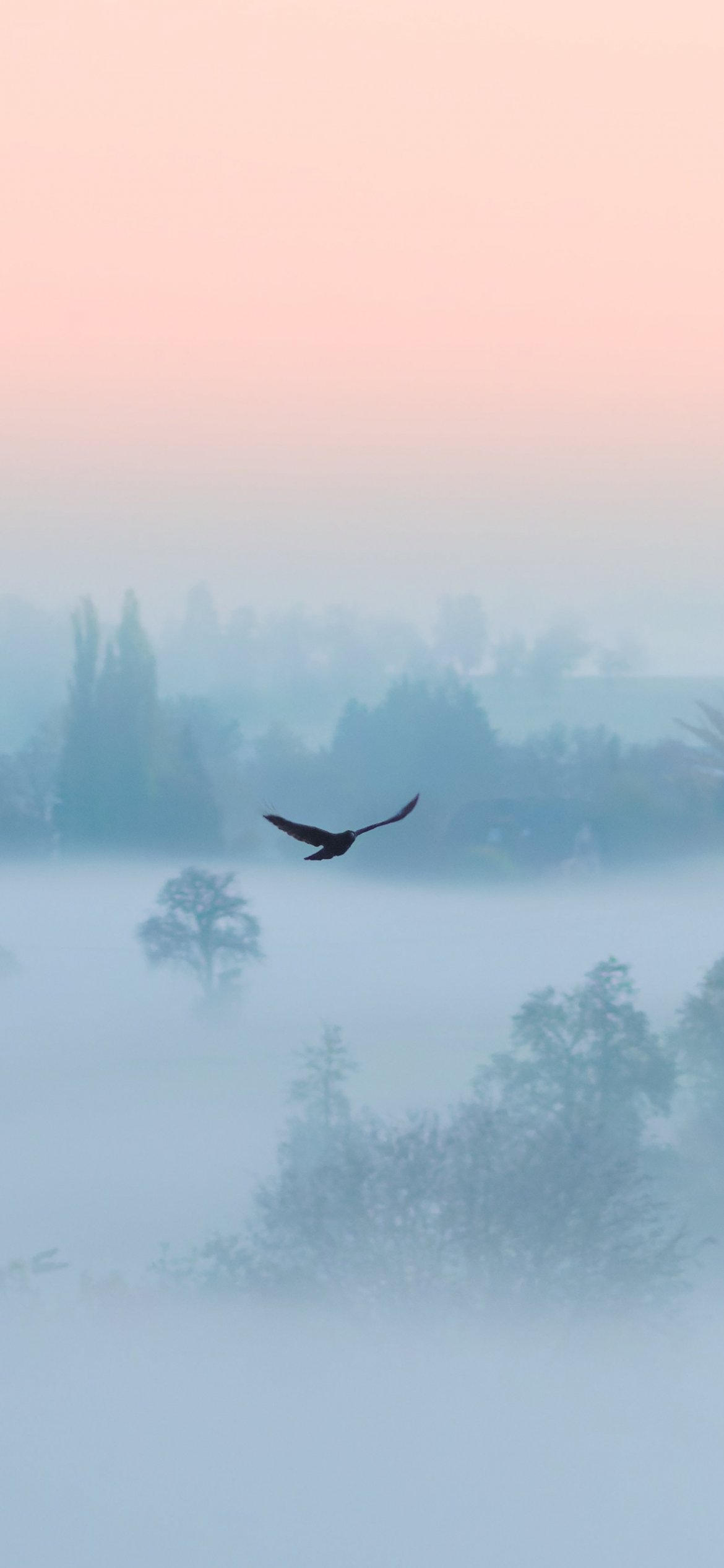 Wallpaper: fog, bird - 1170x2532
