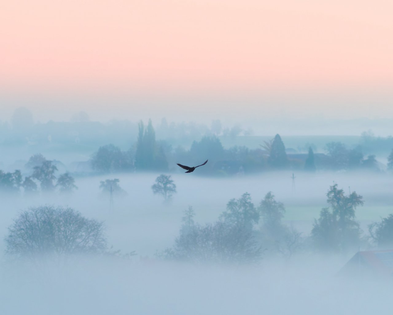Wallpaper: fog, bird - 1280x1024