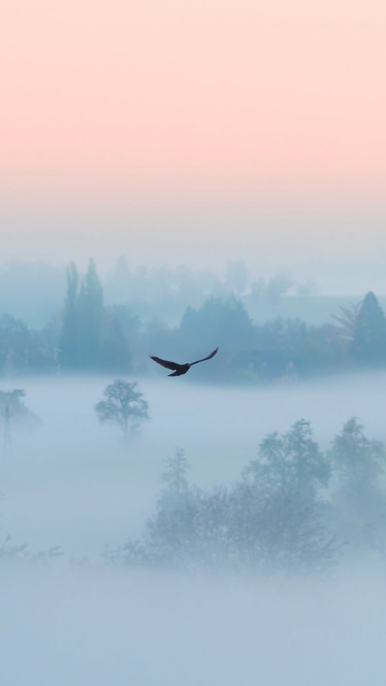 Wallpaper: fog, bird - 750x1334