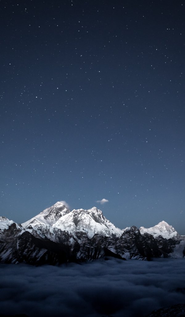 mountains, night, snow Wallpaper 600x1024