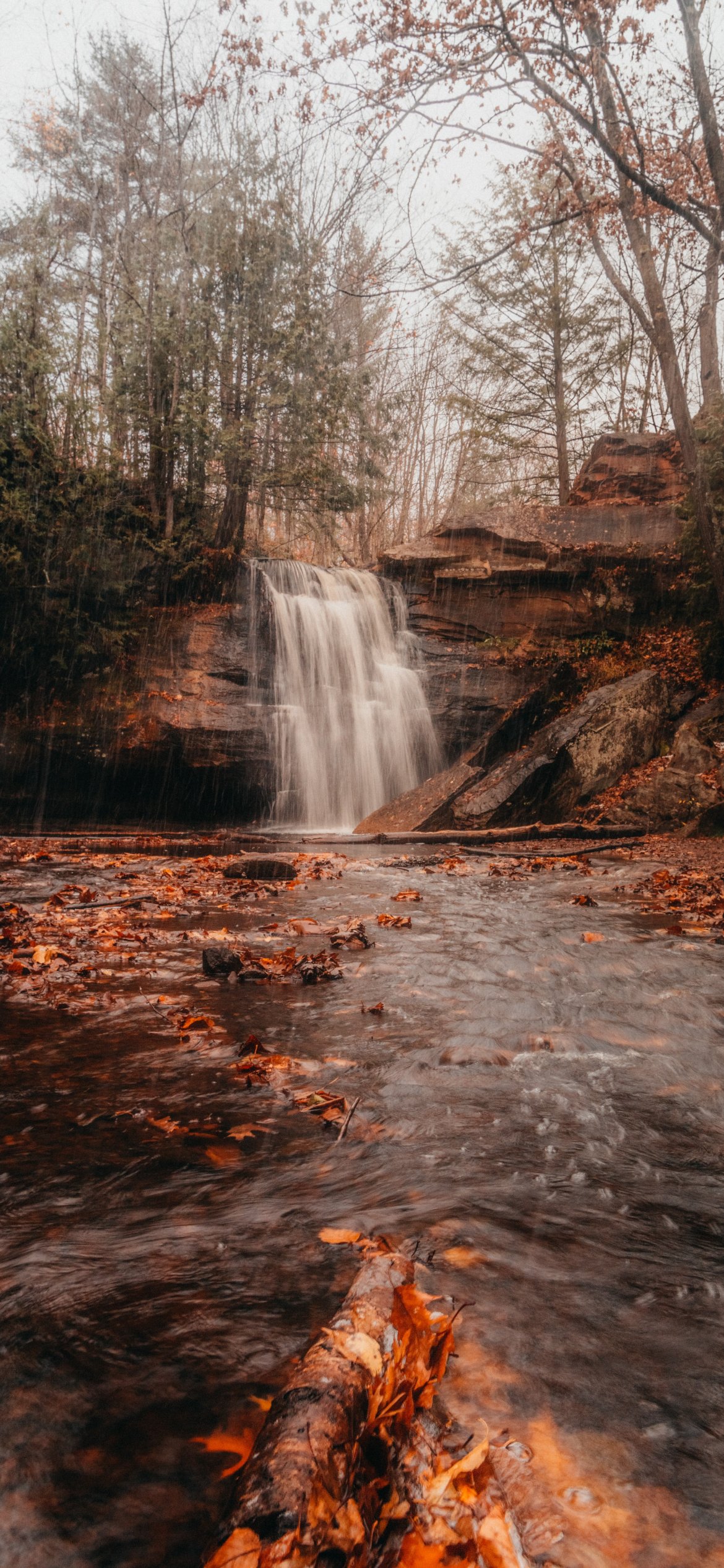 Wallpaper: waterfall, autumn - 1170x2532