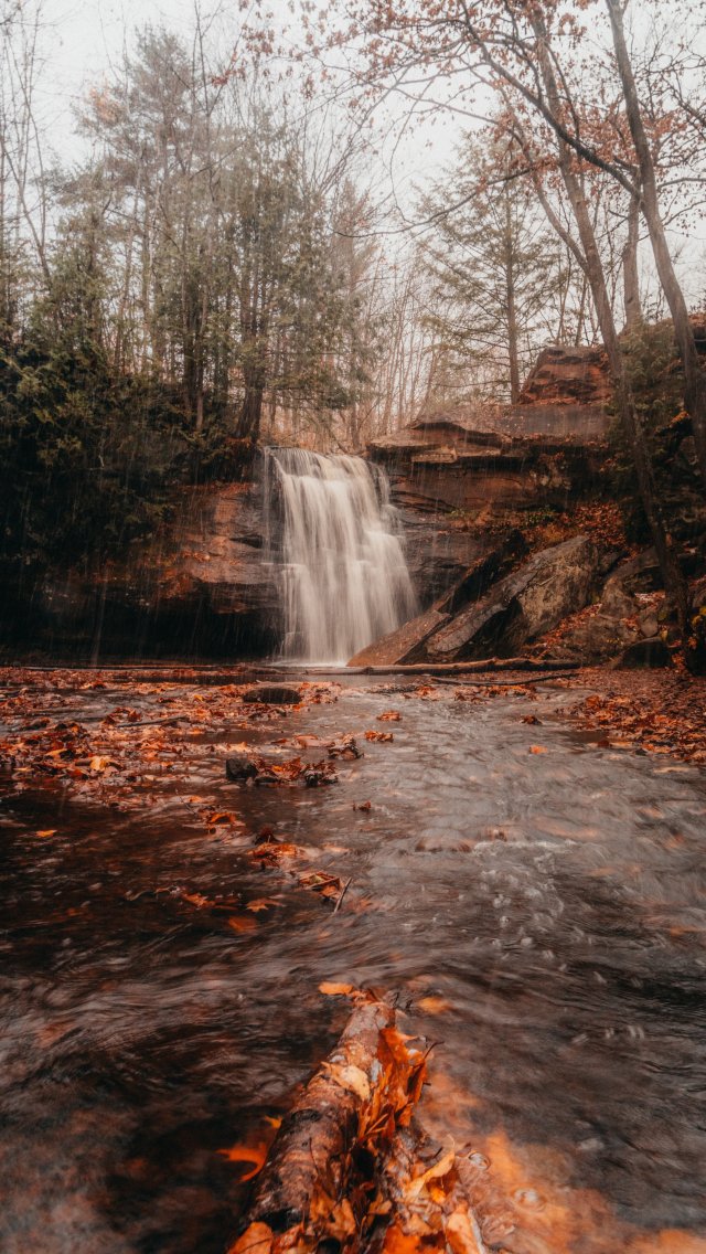Wallpaper: waterfall, autumn - 640x1136