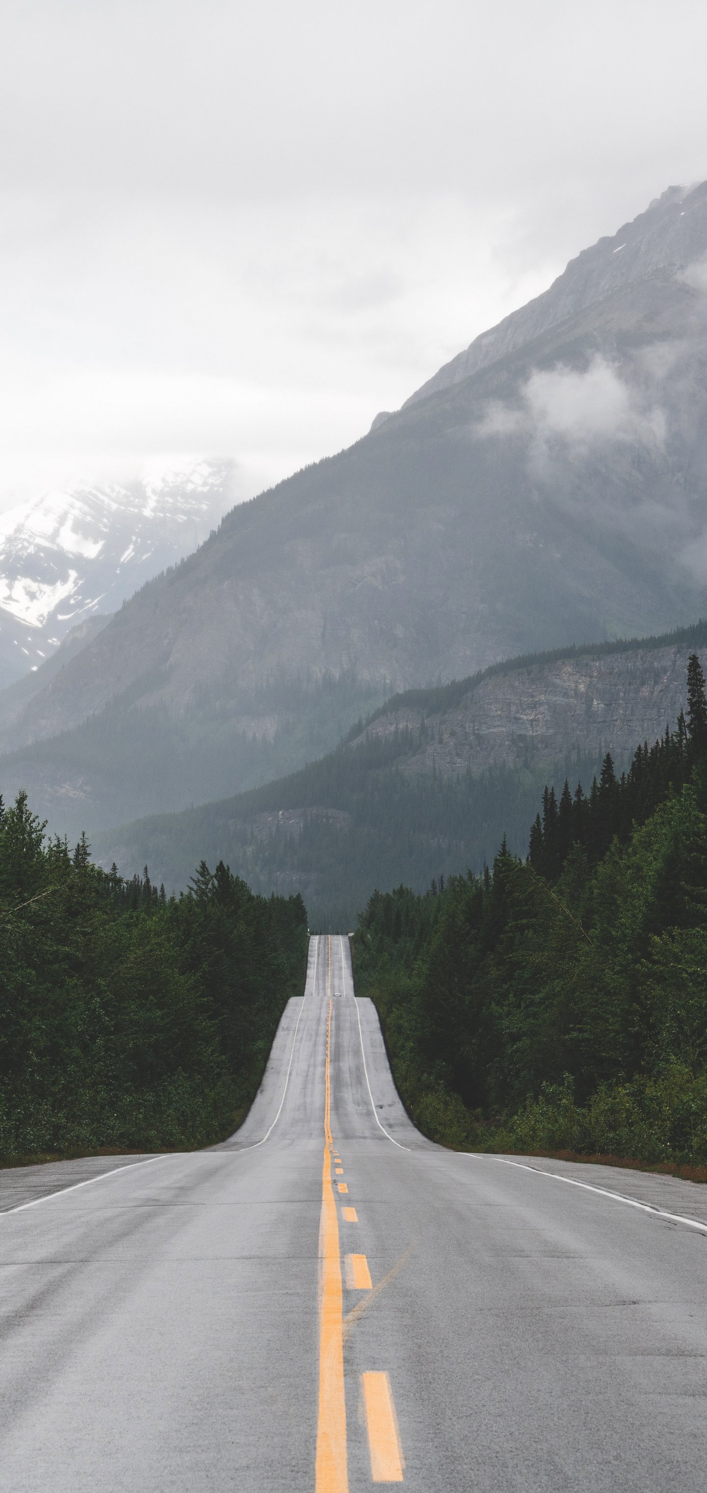 Wallpaper: mountains, road, forest - 1440x3040