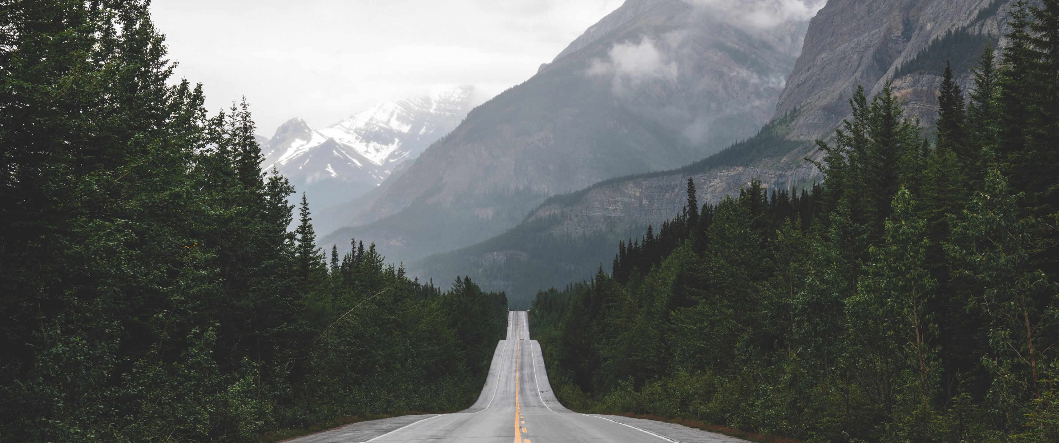 Wallpaper: mountains, road, forest - 3440x1440