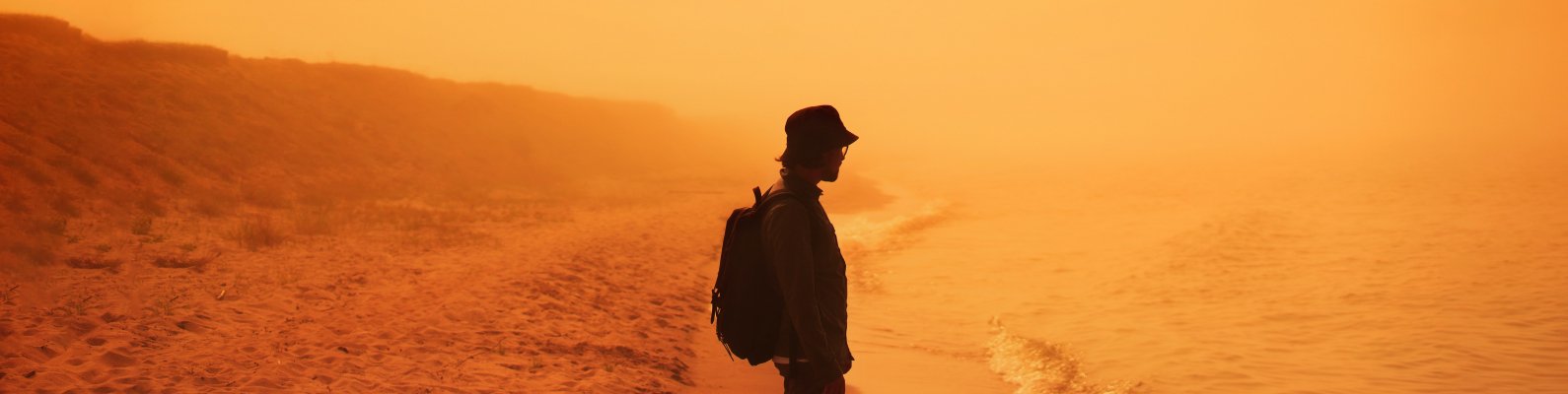 Wallpaper: man, shore, beach - 1590x400