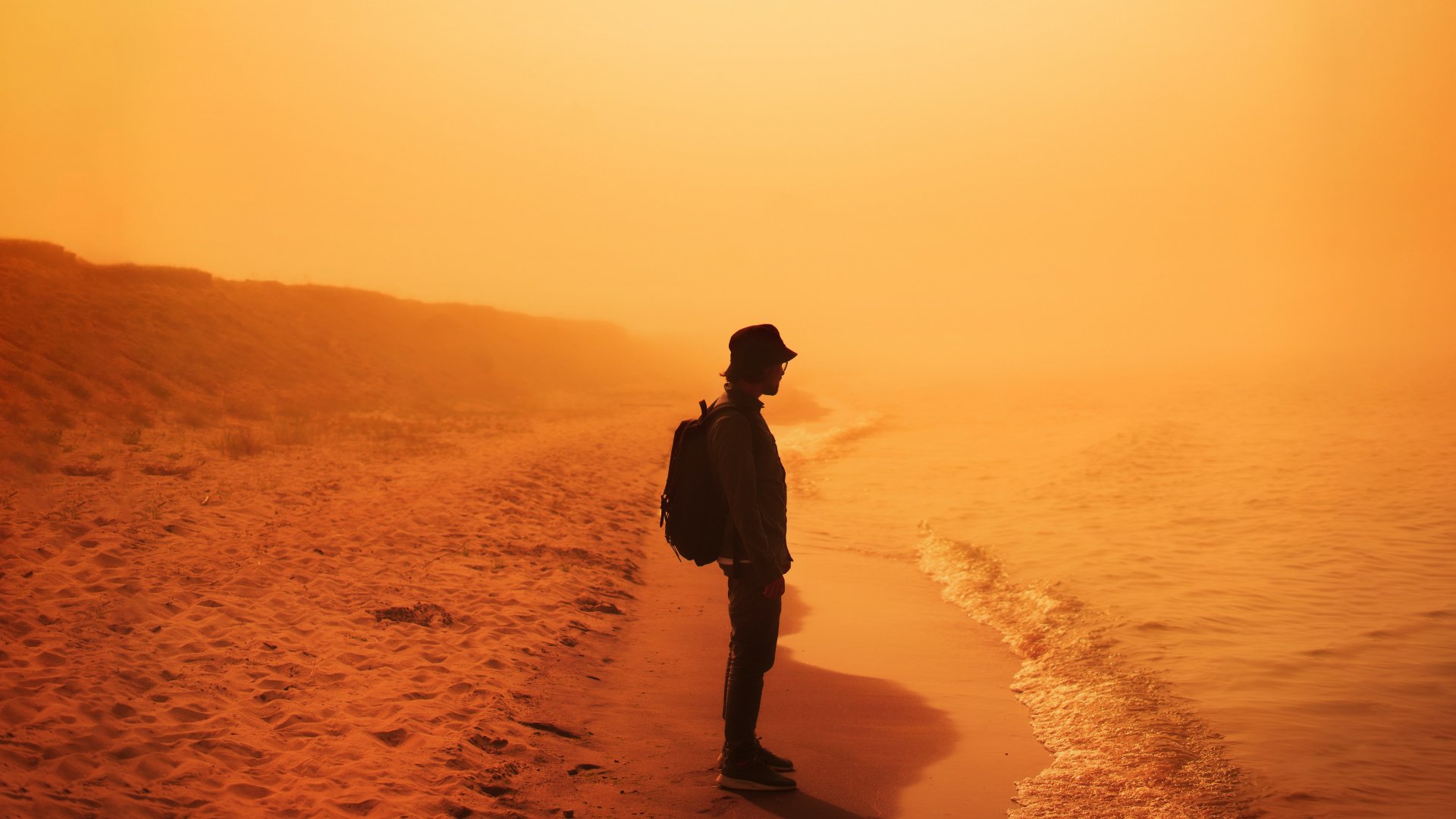 Wallpaper: man, shore, beach - 1920x1080