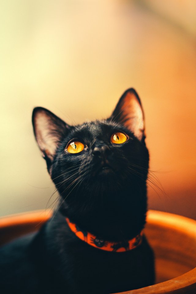 Wallpaper: black cat, wallpaper for pc, look - 640x960