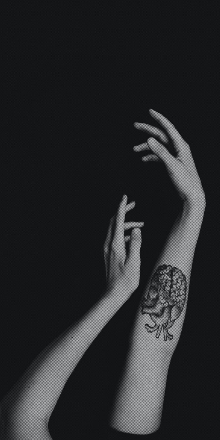 Wallpaper: hands, aesthetics, tattoo, black and white photo - 720x1440