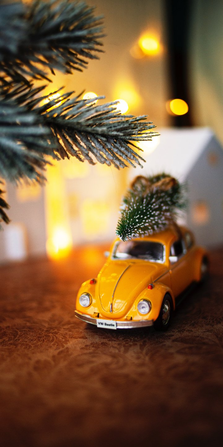 Wallpaper: machine, Christmas tree, macro photo - 720x1440