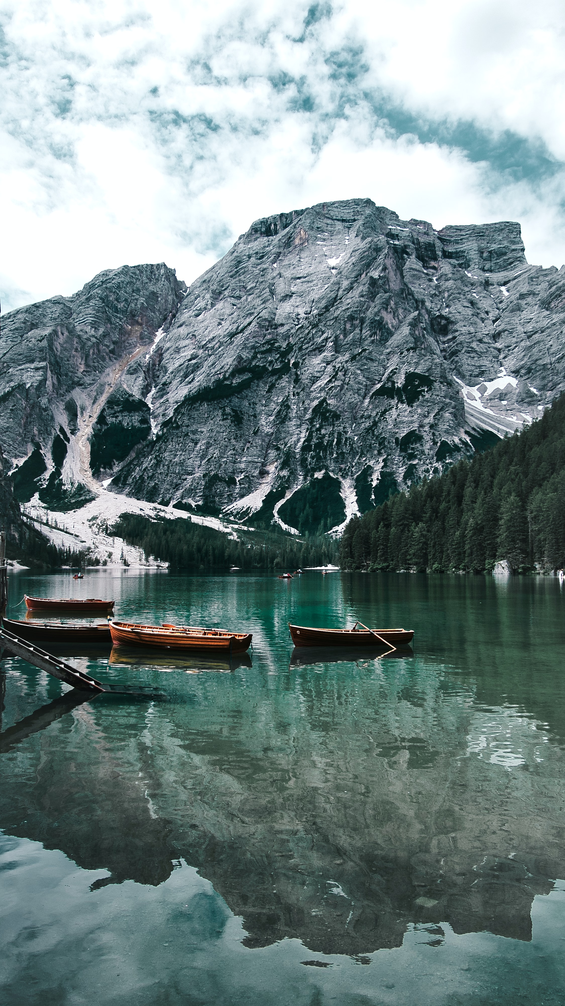 Wallpaper: Lake, boats, mountain landscape - 2249x4000