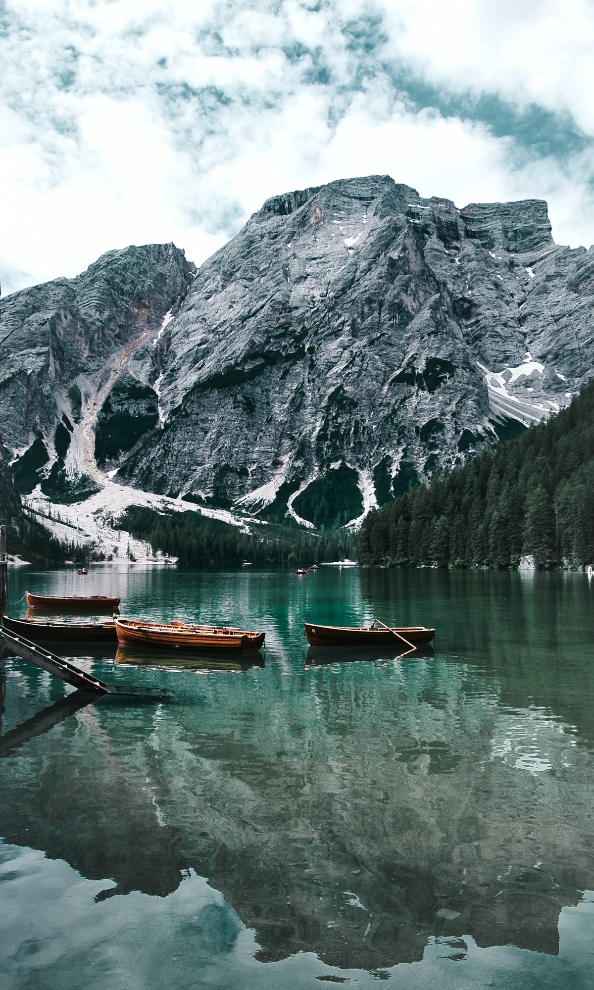 Wallpaper: Lake, boats, mountain landscape - 1200x2000