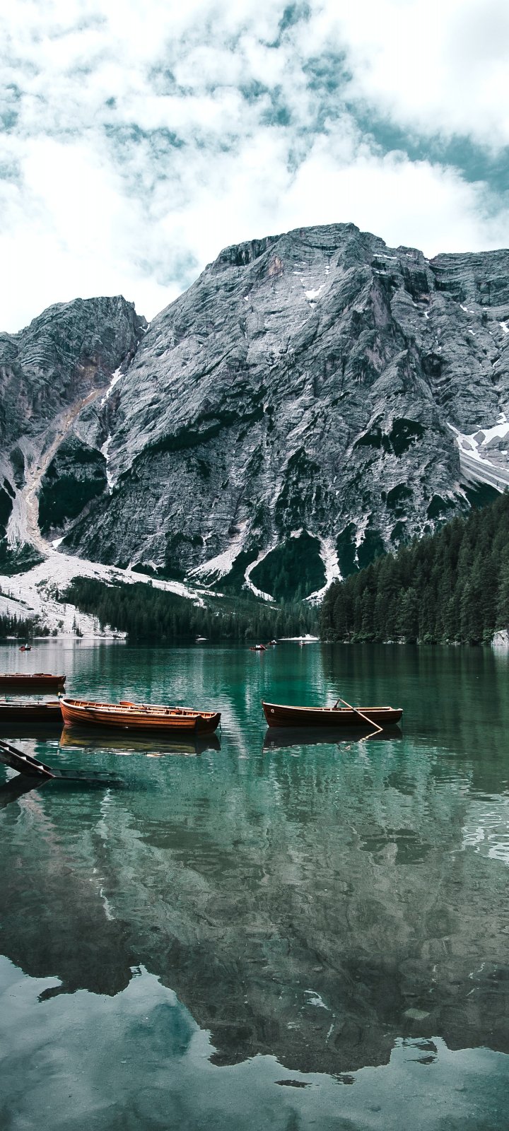 Wallpaper: Lake, boats, mountain landscape - 720x1600
