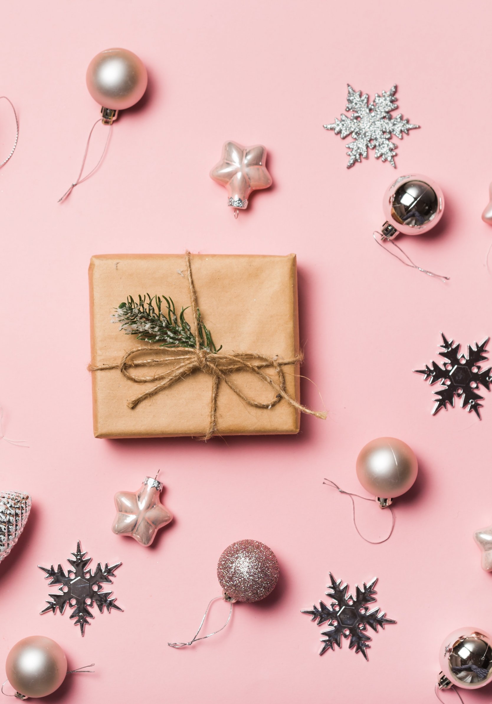 Wallpaper: Gifts, Balls, pink background - 1668x2388
