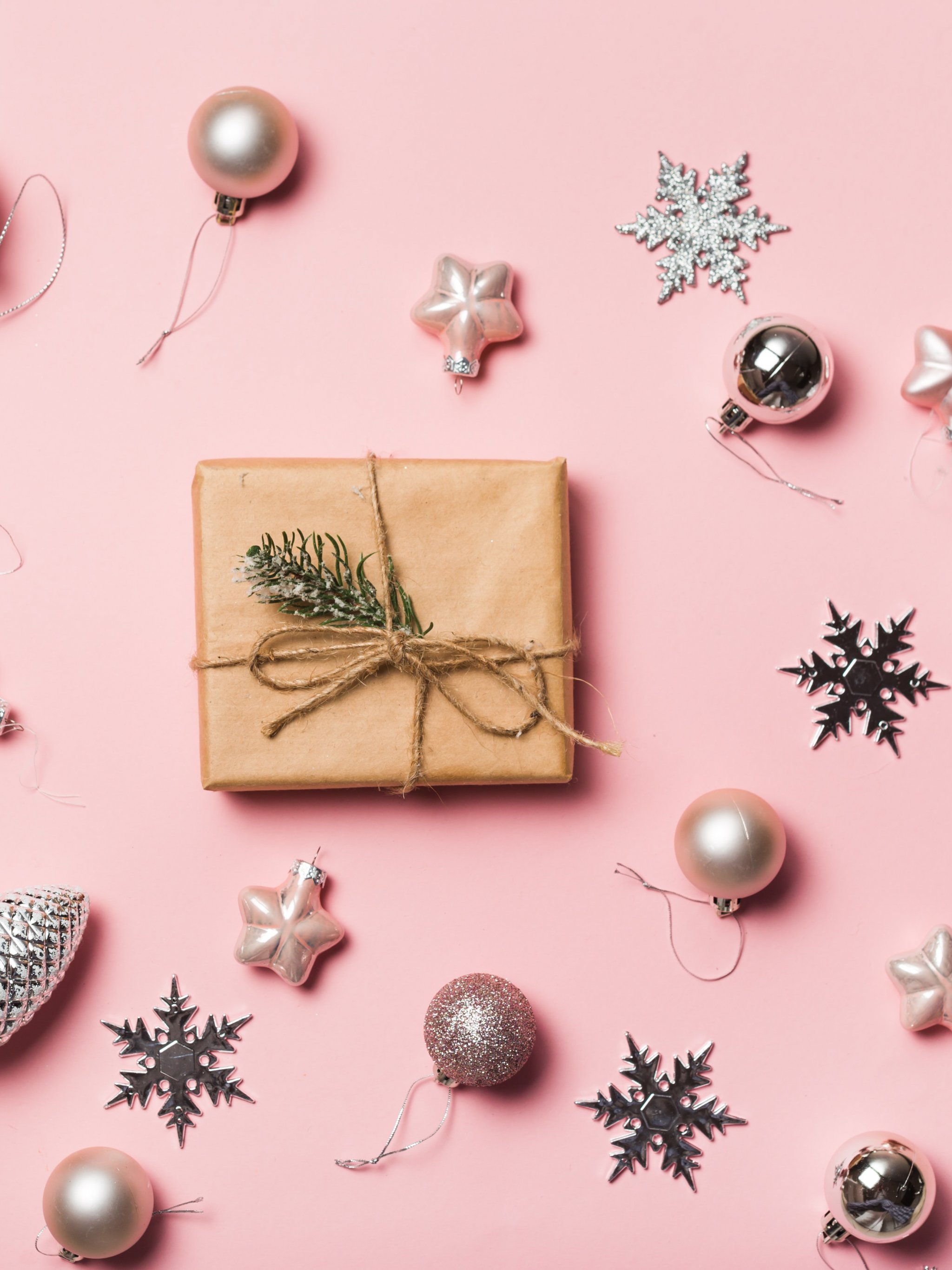 Wallpaper: Gifts, Balls, pink background - 2048x2732