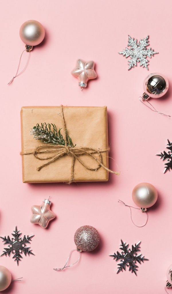 Wallpaper: Gifts, Balls, pink background - 600x1024