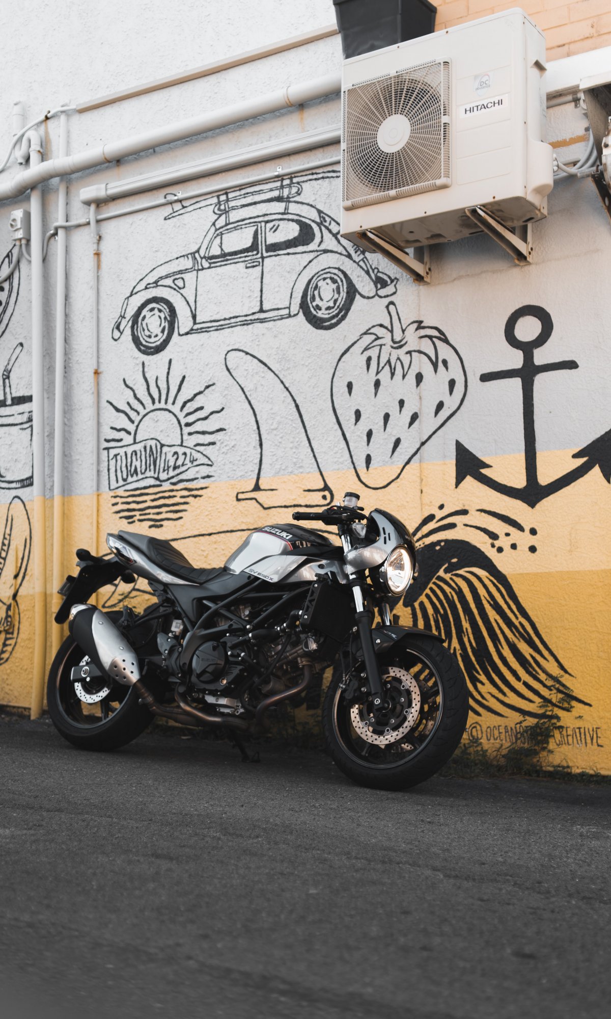 Wallpaper: Motorcycle, graffiti, streets - 1200x2000