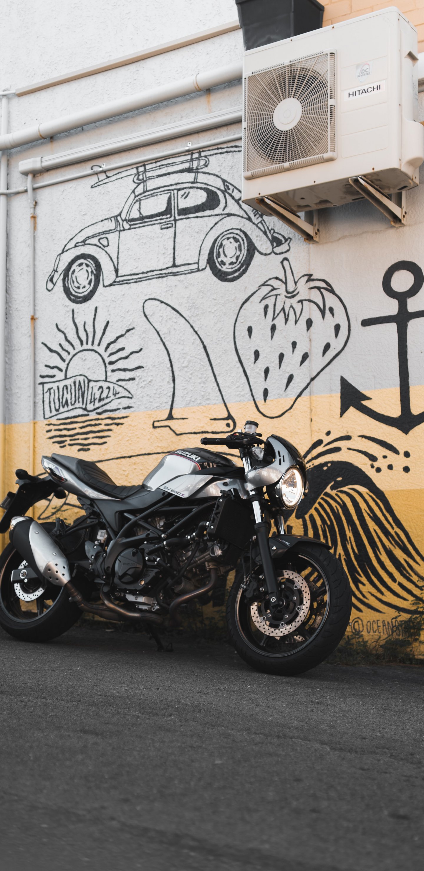 Wallpaper: Motorcycle, graffiti, streets - 1440x2960