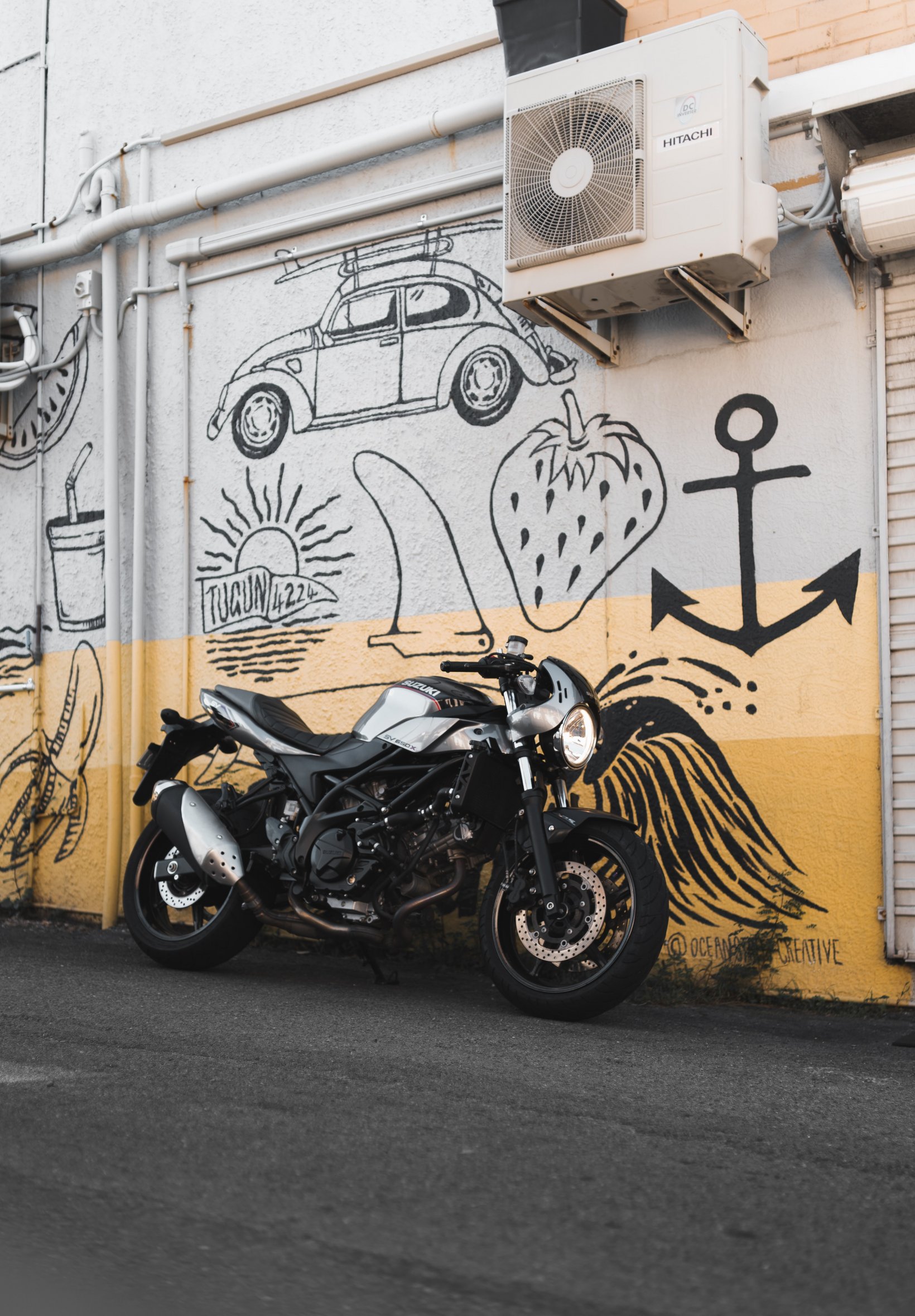 Wallpaper: Motorcycle, graffiti, streets - 1640x2360