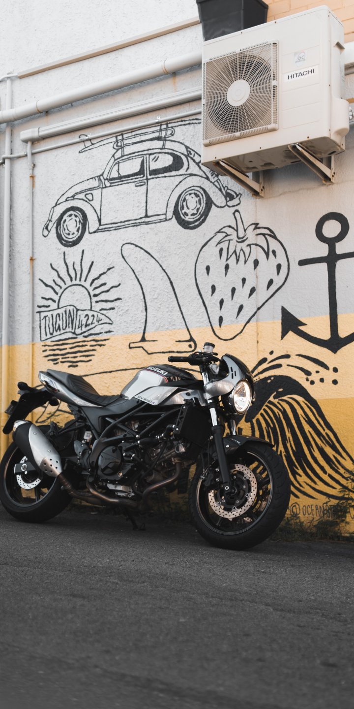 Wallpaper: Motorcycle, graffiti, streets - 720x1440